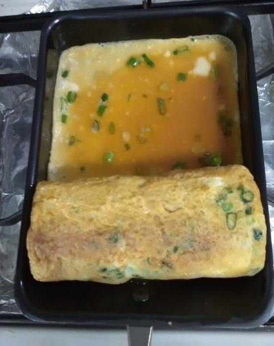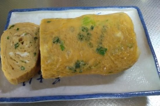 今回は、ネギ入りの卵焼きにしました。