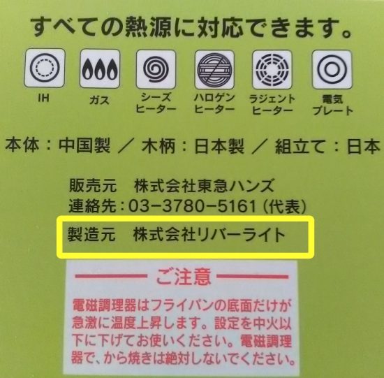 調理面を保護している簡易紙パッケージに、「製造元 リバーライト株式会社」と書いてあるんですから。