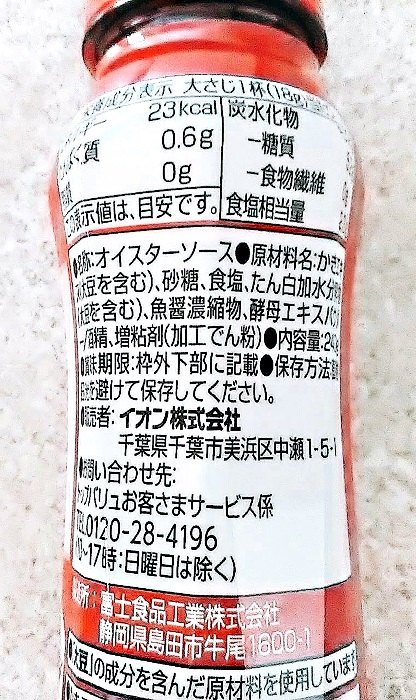 さっそく、近所のイオン系スーパーに行って、トップバリュの「カキのうまみをいかした オイスターソース」を購入。